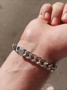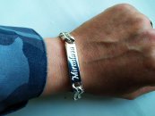 Полновесный браслет.		На фото изображён Панцирный серебряный браслет с пластиной, данная пластина имеет длину 3 см и гравировку сверху "Miroslava".