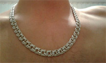 На фото зображено чоловічий срібний ланцюг «Бісмарк» масою 90 грам, але завдяки можливості вибору параметрів його можна змінити під свій смак: 100 грам, 60 грам, навіть 200 грам. Зробити це можна за допомогою кнопки "Вибрати інші розміри". Також можна змінювати не тільки масу, але й інші параметри, такі як: довжина, ширина, замок, покриття.